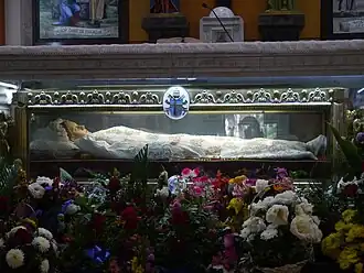 In late September 1869 she developed high fevers for which medical remedies could do little and she died as a result before midnight on 8 December 1869; upon her death a nun reported a pleasant and sweet odor filling the room that Martillo had died in. She died upon the opening of the First Vatican Council.[2][3] In 1995, her remains were deemed upon exhumation to be incorrupt and were transferred from Peru back to her homeland of Ecuador until 1972, when they came to the village of Nobol (which is also called Narcissa de Jesús). On 22 August 1998, an altar containing her reliquary was dedicated.[1]