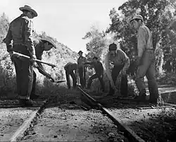 Work crews during the demolition of the Rio Grande Southern Railroad in 1952.