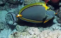 7. ^ a b c d John E. Randall (2022). "Family Acanthuridae". In Phillip C Heemstra; Elaine Heemstra; David A Ebert; Wouter Holleman; John E Randall (eds.). Coastal Fishes of the Western Indian Ocean (PDF). Vol. 5. South African Institute for Aquatic Biodiversity. pp. 219–244. ISBN 978-1-990951-32-9. Archived (PDF) from the original on 2023-06-12. Retrieved 2023-07-17.