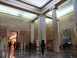 The building has undergone many expansions. Most important were the construction of a new east wing in the early 20th century, based on the plans of Anastasios Metaxas and the construction of a two-storeyed building, designed by George Nomikos, during 1932–1939.[2] These expansions were necessary to accommodate the rapidly growing collection of artifacts. The most recent refurbishment of the museum took more than 1.5 years to complete, during which the museum remained completely closed. It reopened in July 2004, in time for the Athens Olympics and it included an aesthetic and technical upgrade of the building, installation of a modern air-conditioning system, reorganisation of the museum's collection and repair of the damage caused by the 1999 earthquake. The Minoan frescoes rooms opened to the public in 2005.[5] In May 2008, the Culture Minister, Mihalis Liapis, inaugurated the much anticipated collection of Egyptian antiquities and the collection of Eleni and Antonis Stathatos.[6]