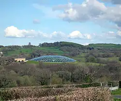 The National Botanic Garden of Wales (Welsh: Gardd Fotaneg Genedlaethol Cymru) is a botanical garden located in Llanarthney in the River Tywi valley, Carmarthenshire, Wales. The garden is both a visitor attraction and a centre for botanical research and conservation, and features the world's largest single-span glasshouse, measuring 110 m (360 ft) long by 60 m (200 ft) wide.[1]