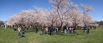 Visitors in a cherry grove on the National Mall, April 5, 2009