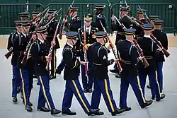 The United States Army Drill Team performing in the 4th Joint Service Drill Exhibition at the National Cherry Blossom Festival in Washington D.C.