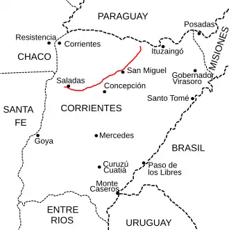 National Route 118 is a national road in Argentina, in the northwest of Corrientes Province. It starts at the junction with National Route 12 until reaching the rural area of Paraje Vallejos Cué for a total length of 196 kilometres (122 mi). The road is marked in red in the map.