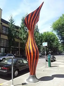 Nepenthes is a series of four sculptures by Dan Corson. Located along Northwest Davis Street between Fifth and Eighth Avenues,[1] the pieces are inspired by the genus of carnivorous plants of the same name, commonly referred to as tropical pitcher plants.[2] According to Corson and the Regional Arts & Culture Council (RACC), which maintains the sculpture series, the work and genus are named after the "magical Greek potion that eliminates sorrow and suffering".[2][3] The agency said that Nepenthes "insert[s] a quirky expression of nature into an urban environment" and celebrates the "unique and diverse community" of Portland's Old Town Chinatown neighborhood.[2][3] Each bulbous-shaped sculpture is nearly 17 feet (5.2 m) tall and glows in the dark due to photovoltaics.[1]