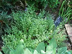 Nepeta × faassenii is cultivated for its attractive aromatic foliage and masses of blue flowers,[4] as groundcover, border edging, or in pots or rock gardens. It is drought tolerant, and can be deer resistant. It has gained the Royal Horticultural Society's Award of Garden Merit.[5] It was first cultivated by Faassen Nurseries in Tegelen, Netherlands, and named by Bergmans.