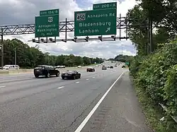 To the north, I-95 runs through Baltimore, Philadelphia, New York City, and Boston before reaching Canada. To the south, it passes through Richmond on its way to Florida. Maryland Route 450 provides direct access to New Carrollton, while Maryland Route 410