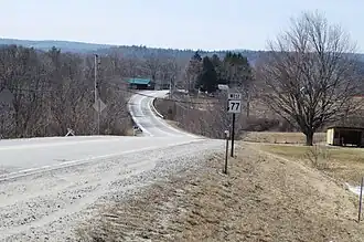 New Hampshire Route 77 (abbreviated NH 77) is a 17.874-mile-long (28.765 km) nominally east–west highway in Hillsborough and Merrimack counties in southern New Hampshire. It runs from New Boston to Dunbarton. Though labeled as east–west, the road has a north–south alignment for half of its length.