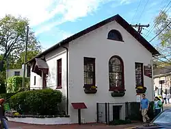 The borough is located at the confluence of the Delaware River and Aquetong (Ingham) Creek, which begins its two-mile course in neighboring Solebury Township at Ingham Springs, the most productive spring in Southeastern Pennsylvania. The name Aquetong comes from a Lenape word meaning "spring in the bushes,"[5] while Ingham refers to Samuel D. Ingham, an industrialist, congressman, and advocate of the canal that would run through the town. Near its end in New Hope, the creek forms a scenic millpond and waterfall near the Bucks County Playhouse, a former mill.