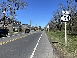 The alignment of Route 154 was originally a stretch of Route 41 through Cherry Hill and Ellisburg assigned in the 1927 renumbering of state highways. The route went from its current alignment along former Route 25 to current Route 154 instead of via the Kings Highway.[3][4] The route remained intact until plans for a bypass around Haddonfield arose in 1929.[5] By the second state highway renumbering in 1953, the bypass around Haddonfield had only been partially built, so instead, the New Jersey State Highway Department realigned Route 41 onto the Kings Highway, leaving the former route unnumbered.[6] The route remained unnumbered until the 1960s, when it was given the designation of Route 154.[7]
