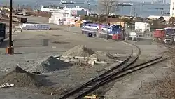 In November 2011 the Port Authority hired HDR, Inc. of Omaha, Nebraska to rehabilitate Greenville Yard. Work included rehabilitating the railyard and waterfront structures, including a rail barge and transfer bridge, demolishing two other bridges, designing a new barge and two new bridges, and adding 10,000 feet of track.[14][15] In July 2012 NYNJ began operating out of the 65th Street Yard. Initial cargo included apples, home heating oil, new automobiles, and scrap metal.[16] The railroad north along First Avenue was refurbished and new tracks laid to support operations at the South Brooklyn Marine Terminal, including an automobile import pier and a new municipal recycling plant.[17]