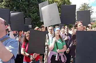 The protest originated at the 2009 Kiwi Foo Camp in Warkworth[1] and ran from 16 to 23 February. Internet users changed their avatars to black squares, to symbolise what opponents of Section 92A regard as guilt by accusation. In particular, they point to the clause in Section 92A which states "Internet service providers must have policy for terminating accounts of repeat infringers". Additionally, protesters were encouraged to sign a petition and/or write to their MP.