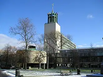 Newcastle Civic Centre is a municipal building in the Haymarket area of Newcastle upon Tyne, England.[1] Designed by George Kenyon,[2] the centre was built for Newcastle City Council in 1967 and formally opened by King Olav V of Norway on 14 November 1968.[3] It is a Grade II* listed building[4] and is the joint eighth-tallest building in the city, standing at 200 feet (61 m).[5]