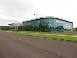 Sage's 32,000 square metres (340,000 sq ft) building housing approximately 1500 employees was built at a cost of £57 million.[17] The building was worked on by Cundall, Tolent and idpartnership architects,[18] and required the use of the largest mobile crane in the country at the time of construction.[19] The building was shortlisted for the British Council for Offices Awards (2005 - Corporate Workplace Project) and was the runner up for the Landmark Awards (2005 - Office Development).[20]