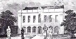 On 25 June 1851, following a dispute among the teaching staff, the school was formally dissolved and the lecturers split into two rival institutions. The majority formed the Newcastle College of Medicine, and the others established themselves as the Newcastle upon Tyne College of Medicine and Practical Science with competing lecture courses.[5] In July 1851 the majority college was recognised by the Society of Apothecaries and in October by the Royal College of Surgeons of England and in January 1852 was approved by the University of London to submit its students for London medical degree examinations. Later in 1852, the majority college was formally linked to the University of Durham, becoming the Newcastle-upon-Tyne College of Medicine in connection with the University of Durham.[6]