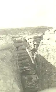 Loading bomb in a typical trench emplacement, Mesopotamia 1918