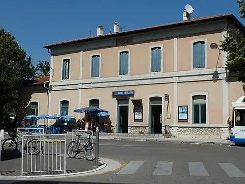 Nice-Riquier is a train station on the line from Marseille to Ventimiglia, situated in Nice, in the department of Alpes-Maritimes in the region of Provence-Alpes-Côte d'Azur, France.[1] As of 2022, the station is served by regional trains (TER Provence-Alpes-Côte d'Azur) to Cannes, Grasse, Ventimiglia and Nice.[2][3]