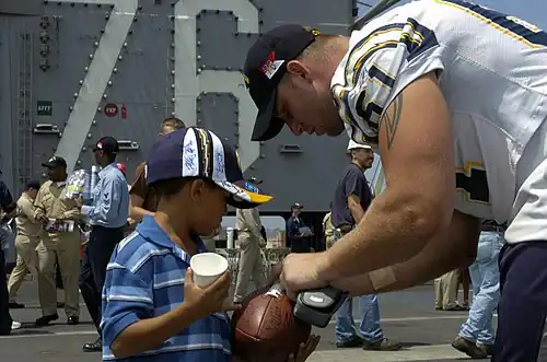 Nicholas Adam Hardwick[1] (born September 2, 1981) is an American former professional football player who was a center in the National Football League (NFL), playing his entire 11-year career for the San Diego Chargers. He currently serves as the assistant offensive line coach for the Chargers. He was selected by the Chargers in the third round of the 2004 NFL draft, and was named to the Pro Bowl in 2006. He played college football for the Purdue Boilermakers.