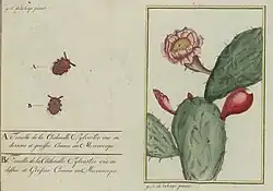 Nicolas-Joseph Thiéry de Menonville (18 June 1739 in Saint-Mihiel, France – 1780 in Port-au-Prince, Saint-Domingue), avocat at the Parlement of Paris,[1] was a French botanist who volunteered to be sent to Mexico in 1776 to steal the cochineal insect valued for its scarlet dye. In his clandestine biopiracy, he worked without official papers and would have been ruthlessly treated had he been caught. He succeeded in naturalizing the insect and the prickly pear (Opuntia) "nopal" cactus on which it depended in the French colony of Saint-Domingue.[2]