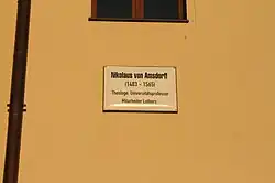 Nicolaus von Amsdorf (Latin: Nicolaus Amsdorfius, 3 December 1483 – 14 May 1565) was a German Lutheran theologian and an early Protestant reformer. As bishop of Naumburg (1542–1546), he became the first Lutheran bishop in the Holy Roman Empire.