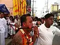 According to an early-nineteenth-century interpretation of Chinese Taoism by a local community of Chinese immigrant miners, the Nine Emperor Gods descend from poles located in the shrine's yards and incarnate by using the bodies of the participants as shells for walking on Earth.  The participants who prepare to volunteer their bodies to the gods are called the Ma Song.  During the main ritual at the temples, the Ma Song fall into a trance and pierce their cheeks with ritual objects, including knives, spears, relics, and other items of personal significance.  Then, the Ma Song demonstrate their submission by presenting their expressive forms of self-mutilation in a public procession.[15] In his research project starting in 2012, Schneider identified the affective states of the Ma Song that reflected a religious frame of submission.[16] While in Western cultures dominance is seen as a cherished goal, Schneider observed an unusual appreciation of submission amongst the Ma Song.[17] This might be generalizable to other religious practices where believers submit in devotion. This study has been made possible through the support by Fulbright Scholar grant PD2082693, the National Research Council of Thailand in Bangkok, and the members of the Phuket Provincial Cultural Office. Dr. Schneider was depicted on his research site in a National Geographic documentation by Morgan Freeman.[18]