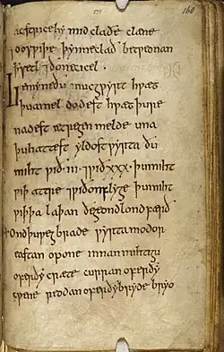 The Nine Herbs Charm, Nigon Wyrta Galdor, Lay of the Nine Healing Herbs, or Nine Wort Spell (among other names) is an Old English charm recorded in the tenth century CE.[1] It is part of the Anglo-Saxon medical compilation known as Lacnunga, which survives in the manuscript Harley MS 585 in the British Library.[2] The charm involves the preparation of nine plants.