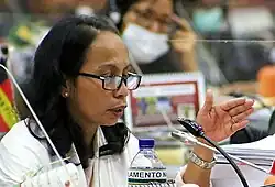 Noémia Sequeira (born 1980 in Oe-Cusse Ambeno) is a politician from Timor-Leste. She has been a member of the Fretilin party.[1] She stood in the 2017 parliamentary elections as a candidate on her party's list in position 24, but missed direct entry into the National Parliament.[2] However, as other elected party representatives gave up their seats, Sequeira was eventually elected to parliament in 2017.[3] She was appointed as a member of the Public Finance Commission,[4] and a deputy member of the Parliament's Administrative Council.[5] In the 2018 parliamentary elections, Sequeira again narrowly missed direct entry into parliament on the list position 24,[6] but on 13 June she replaced Mari Alkatiri, who gave up his seat. Sequeira remained a member of the Public Finance Commission.[1][7]