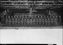 Squadron Leader A.A Lewis, who had returned from exchange duty with the Royal Air Force, became commander on 17 May; he would command the squadron for the rest of its existence. After the delivery of four Wapiti Mark IIAs on 1 June 1937, the squadron was reorganized with only bomber aircraft and the Fighter Flight expanded into No. 1 (Fighter) Squadron. Relocating to Rockcliffe on 17 June, No. 3 Squadron initially included five pilots and five air gunners. Though the Wapiti proved unpopular with its pilots due to its poor performance, the Canadian government would not spend more money for superior aircraft. No. 3 Squadron completed initial air gunnery and bombing practice with the Wapitis that summer.[8] Influenced by his RAF experience to believe that "the supreme test of a bombing squadron is its ability to reach its objective in any kind of weather", Lewis emphasized night flying and long-range navigation in squadron training.[9] During 1938, the squadron received four more Wapitis to form an additional flight, though only four of its aircraft were equipped with wireless, logging 1,000 training hours. One of the original Wapitis received in 1937 was written off after a crash landing at Sharbot Lake on 14 July.[10] In addition to practicing bombing with camera obscura during the year, the squadron flew simulated low-level bombing and gas attacks as part of the opposing force during Canadian Army exercises at Camp Borden in late August and early September.[11][12] In October, it flew its Wapitis 2,300 miles (3,700 km) to relocate to Calgary using the Trans-Canada Air Lines route, joining Western Air Command on 21 October after departing Rockcliffe on 18 October; this was the first RCAF long-distance relocation by air.[1] The move originally scheduled for September but was delayed as a result of the Munich Crisis.[13] At the time, the squadron included four officers and 91 airmen, with six pilots included.[14]