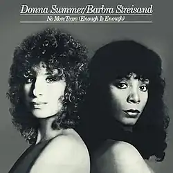 "No More Tears (Enough Is Enough)" is a song recorded by American singers Barbra Streisand and Donna Summer, released in October 1979. It was written by Paul Jabara and Bruce Roberts, and produced by Giorgio Moroder and Gary Klein. The song was recorded for Streisand's Wet album (1979) and also as a new track for Summer's compilation double album On the Radio: Greatest Hits Volumes I & II (1979). The full-length version was found on Streisand's album, while a longer 11-minute edit (the 12" version) was featured on Summer's album. The longer 12" version features additional production by frequent collaborator Harold Faltermeyer, and incorporates a harder rock edge.