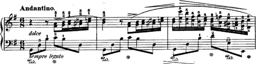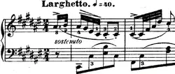 One of the greatest innovations made by Chopin to the nocturne was his use of a more freely flowing rhythm, a technique based on the classical music style. Also, Chopin further developed the structure of the nocturne, taking inspiration from the Italian and French opera arias, as well as the sonata form. Composer Franz Liszt even insisted that Chopin's nocturnes were influenced by Vincenzo Bellini's bel canto arias,[11] a statement affirmed and echoed by many in the music world. A further innovation of Chopin's was his use of counterpoint to create tension in the nocturnes, a method that even further expanded the dramatic tone and feel of the piece itself.[5] It was mainly through these themes of operatic influence, freer rhythms, and an expansion into more complex structures and melodic playing that Chopin made his mark on the nocturne.[10] Many think of the "Chopin nocturne" as a mix between the form and structure of Field and the sound of Mozart, displaying a classic/romantic-influenced theme within the music.[5]