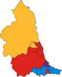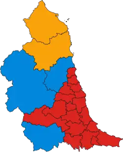 The constituency corresponded to the North East England region of the United Kingdom, comprising the ceremonial counties of Northumberland, Tyne and Wear, County Durham and parts of North Yorkshire.
