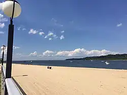 What is now North Hempstead Beach Park used to be two separate parks: Bar Beach Town Park (operated by the Town of North Hempstead) and Hempstead Harbor County Park (operated by Nassau County).[1][2] The name was changed to its current name in 2008, following the Town's takeover. It is located off of West Shore Road (Nassau County Route 15), and is only accessible (with a fee) to residents of Nassau County.[2][3] Bar Beach was historically also known as Barrow Beach.[4]