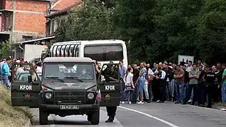 - ^ a b c "Info — KFOR troops withdraw, Serbs at barricades". B92. Archived from the original on 27 November 2011. Retrieved 9 September 2012.