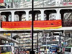 The eastbound Hong Kong Tramways line runs through Chun Yeung Street, a busy marketplace.