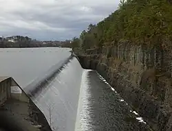 Water entering the spillway of the Lake Tuscaloosa dam, where it soon rejoins the North River bed