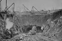 Meanwhile, the John Shields Construction Company had begun in 1905 to bore through Bergen Hill, the lower Hudson Palisades;[21] William Bradley took over in 1906 and the tunnels to the Hackensack Meadows were completed in April 1908.[22][23]