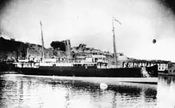 Steamer built of steel, 113 ft (34 m) long (from 1910 133.2 ft (40.6 m)), 21.1 ft (6.4 m) wide, 9.8 ft (3.0 m) deep, 54 hp (40 kW), 3-cylinder engine (12, 19, 31 - 22)″[129] by Muir & Houston Ltd., Kinning Park for W.A. McGregor, Auckland. She was launched on 3 June 1902, had a single screw[243] and oak and walnut panelling. Her delivery voyage from 24 July to 26 October, via St. Vincent, Cape Town and Hobart[244] was mainly under sail as a brigantine.[245] She was used between Auckland, Waiwera and Warkworth.[244] 1905 sold to SSC. 23 December 1905 sank the Kapanui, with the loss of 5 lives. 1907 sold to William J. Parker and James Smith, Auckland. On 1 October 1908 SSC merged with NSS,[29] adding Claymore, Gael, Kapanui, Kawau, Kotiti and Orewa to the fleet.[30] 1910 cut in half and lengthened.[245] In 1930 her saloon was enclosed to add 8 berths.[246] 1938 laid up. 1940 used as a salvage vessel working on the recovery of bullion from the Niagara. 1940 used by the Navy and as a Boom Defence Vessel. She was then laid up at Devonport Naval Base.[245] In February 1953 she was to be filled with old explosives and used by Black Prince for target practice off the Hauraki Gulf.[247] However, instead, on 20 April 1953, she was sold for £125 and broken up at Auckland.[248]