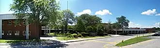 Northport High School is located on the corner of Elwood and Laurel Hill Roads. Although it's called Northport High School, it technically sits on East Northport land. To the west is a Wilson Technological Center campus, part of Western Suffolk BOCES. The Long Island Rail Road's Port Jefferson Branch bounds the school to the south.