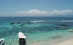 Nusa Lembongan (Balinese: ᬦᬸᬲᬮ᭄ᬮᭂᬫ᭄ᬩᭀᬗᬦ᭄, romanized: nusa lĕmbongan) is an island located southeast of Bali, Indonesia. It is part of a group of three islands that make up the Nusa Penida District in Klungkung Regency, of which it is the most famous of the three islands of Nusa Penida, Nusa Lembongan, and Nusa Ceningan - known together as the "Nusa Islands".[1] This island group, in turn, is part of the Lesser Sunda Islands.