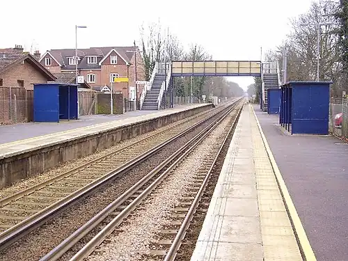 Nutfield railway station is on the Redhill to Tonbridge Line and serves Nutfield, Surrey, England. It is about a mile south of Nutfield itself, located in South Nutfield, a settlement which did not exist before the coming of the railway. It is 24 miles 47 chains (24.59 miles, 39.57 km) measured from London Charing Cross via Redhill.