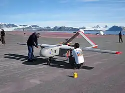 Mining ceased in Ny-Ålesund in 1929; it was taken up again in 1941,[8] but because of the Second World War the town was evacuated the following year.[9] From 1946, the Royal Norwegian Air Force started serving Ny-Ålesund with their Consolidated PBY Catalina amphibian aircraft. The aircraft were able to land if there was no ice on the fjord and lighting and weather permitted it. The first flight took place on 10 May and consisted of post drops. No further flights were carried out until 1949; one of the flights that year was an air ambulance operation. The service also dropped post at the other Norwegian settlements in Svalbard. In 1961, the Catalinas were replaced with Grumman HU-16B Albatross aircraft.[10]