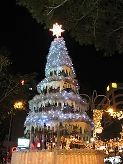 A Christmas tree in Plaza Fabini in Montevideo, Uruguay