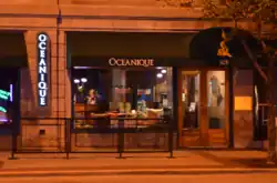 Oceanique is a fine dining gourmet French-American cuisine restaurant in Evanston, Illinois that serves seafood. Oceanique has consistently been ranked as the number one seafood restaurant in the Chicago metro area by the Zagat Guide.[1] "Make It Better Magazine" deemed it the best fine dining restaurant in 2014 and awarded them with the "Best of the North Shore" prize.[2] It opened in 1989. Mark Grosz is the head chef and owner. It is located at 505 Main Street, two blocks from the Main St. 'L' Station.[3] Oceanique has an adjoining outdoor patio that customers can use, weather permitting.[4][5][6][7][8]