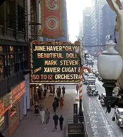 1949 photograph of the Marquee of the Chicago Theatre advertising showings of the film