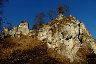 Ojców Castle (Polish: Zamek Ojców) - a castle located in the Kraków-Częstochowa Upland, part of a system of castles known as the Eagle's Nests (Polish: Orle Gniazda) - formerly protecting the southern border of the Kingdom of Poland; currently housing a museum dedicated to the castle in its renovated castle-tower. The castle is located in the village of Ojców (25 kilometres (16 mi) north of Kraków), Lesser Poland Voivodeship; in Poland.[1]