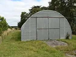 The railcar storage shed erected by John Murphy, with the SH2 overbridge in the background.