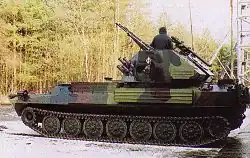 (LSPZRA for lekki samobieżny przeciwlotniczy zestaw rakietowo-artyleryjski – lit. light, self-propelled, anti-aircraft, combined gun and missile system; Sopel is Polish for Icicle) - air defence variant armed with twin 23 mm cannon and two 9M32M "Strela-2M" surface to air missiles. Vehicle designed as air-defence vehicle for mechanized units. Only prototype.[6]
