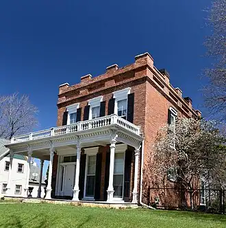 The Ora Holland House, also known as the Holland-Viner House, is a historic building located in Dubuque, Iowa, United States. Holland was a contractor-builder who came to Dubuque from Vermont in 1846 by way of Jacksonville, Illinois where he learned his trade. He built his house over a period of two years because of other projects he was involved with, completing construction in 1857. Holland acquired the property from the Langworthy brothers, who were the first prominent citizens of Dubuque to settle above the bluff.[2] The two-story brick residence is reminiscent of the Federal style. The entry, heavy window cornices and parapets reflect the Greek Revival style. The house was listed on the National Register of Historic Places in 1986.[1]