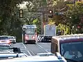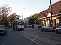 Orange Street/Media station is a light rail station in Media, Pennsylvania. It is a street running stop located at Orange and State Streets in Downtown Media. There are no physical platforms; passengers board and exit trolleys directly from street level. Trolley service is provided by the D and runs east to 69th Street Transit Center in Upper Darby. Orange Street is the westernmost station on the line, and is unusual in that the tracks simply and abruptly dead-end in the middle of the street; there is no bumper block, balloon loop, or train yard at this location although an overhead wire device will knock down the trolleys' overhead pantograph so that they cannot continue past the end of track (although some cars have slightly derailed there and gouge marks are evident in the asphalt).