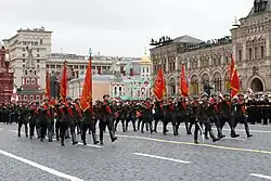 During World War II the order was granted to more than 42,000 Soviet servicemen and nine servicewomen, about 70 foreign generals and officers, and over 1,470 military units that display the order on their banners; in all, 50,585 were awarded.[1] Of those recipients, nine were women – Serafima Amosova, Yevdokiya Bershanskaya, Galina Lomanova, Valentina Kravchenko, Yevdokiya Nikulina, Olga Sanfirova, Mariya Smirnova, Vera Tikhomirova, and Olga Sholokhova.[6][7]